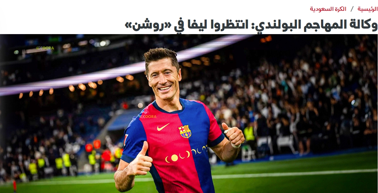 在沙特媒体获得的一份声明中,莱万的经纪公司Gol International表示:“目前沙特联赛的谈判员尚未与莱万多夫斯基展开接触,但这有可能发生,明年沙特联赛将见证莱万加入他们其中的一支球队。”