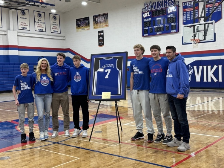 很受欢迎!克尼佩尔高中母校陈列其大学球衣:希望他成为大家榜样